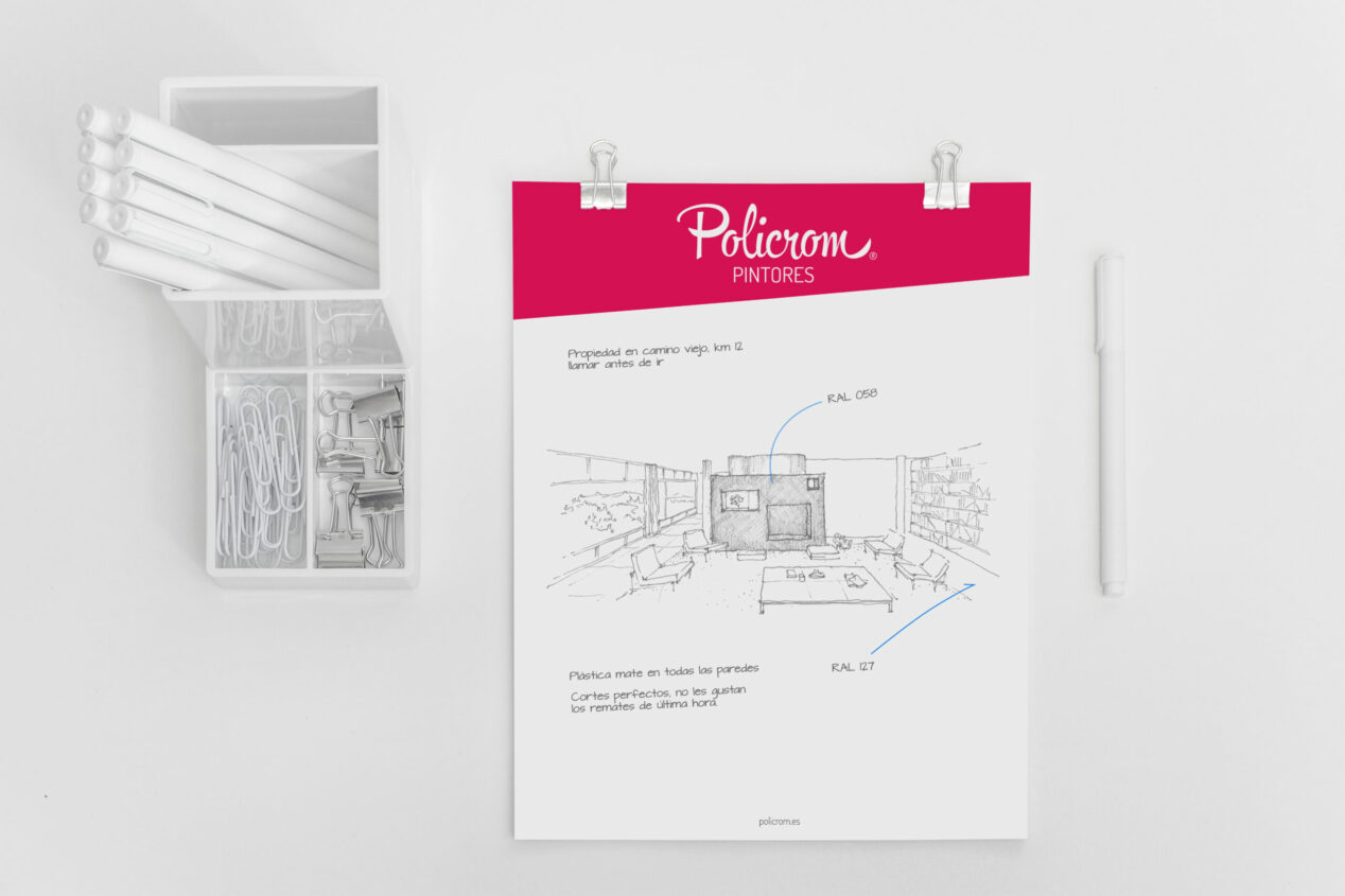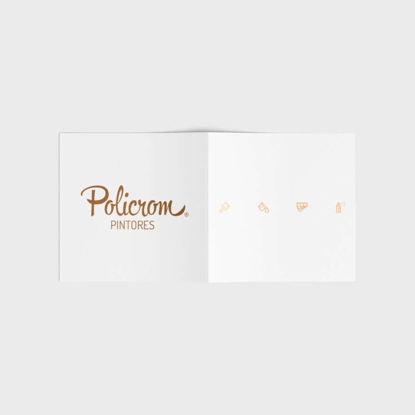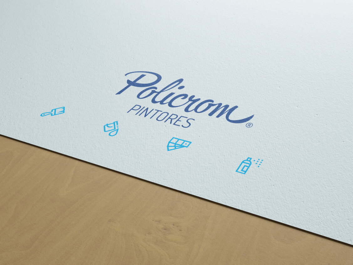 Creación de Identidad Corporativa. Policrom pintores, una empresa con una amplia experiencia pintando todo tipo de locales, viviendas, oficinas y fachadas. En un sector que no suele apostar o invertir en imagen, Policrom da el paso contratándonos para crear una imagen de su negocio y sus servicios, que ofrezca a sus clientes una mayor confianza y una imagen que represente mejor su profesionalidad.